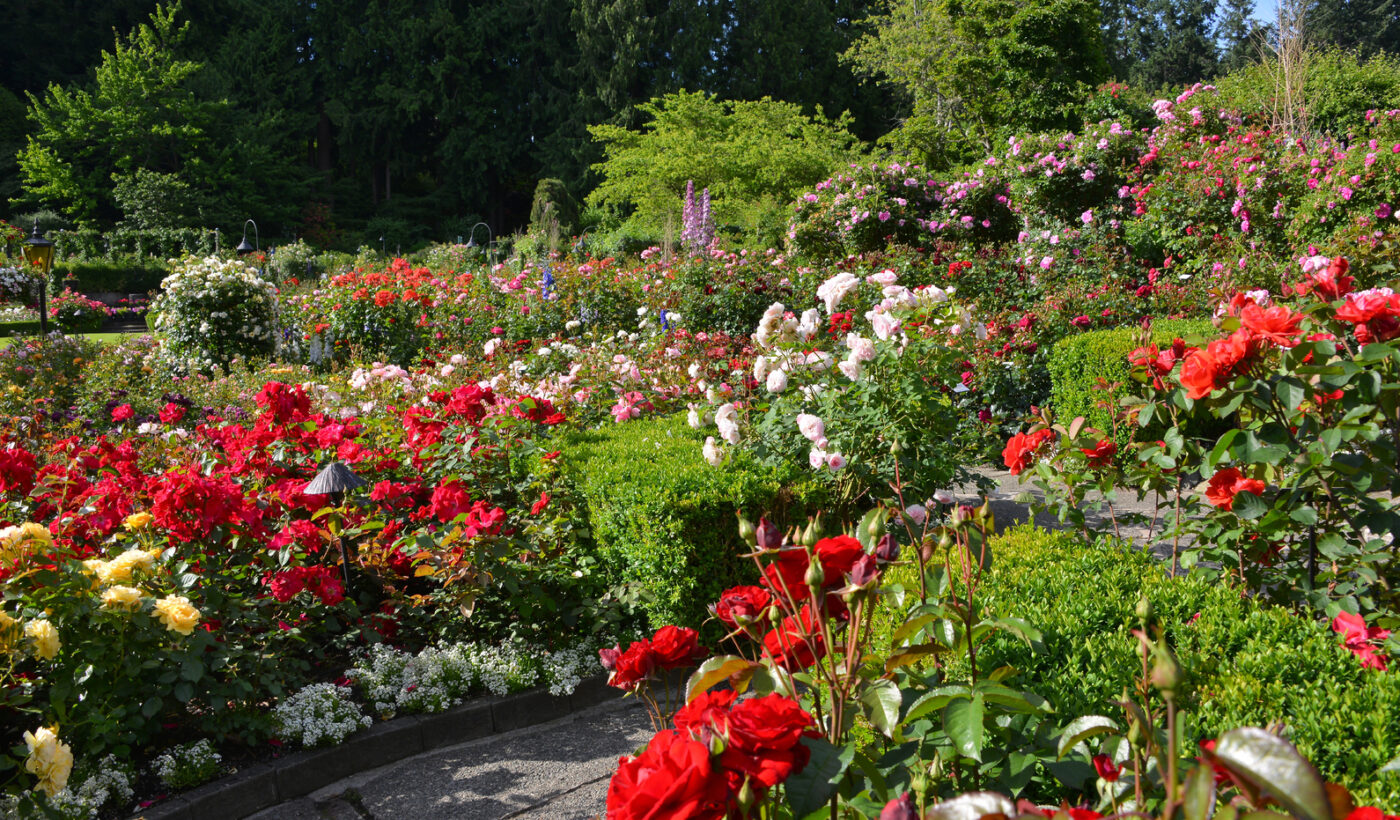 Les jardins sont en pleine effervescence. Les jardiniers ont été très occupés à transformer les parterres de fleurs du printemps à l’été, à remplacer les conteneurs et les paniers suspendus du printemps par ceux de l’été et à planter des arbustes tendres et des plantes d’accentuation délicates dans les expositions du jardin. Le temps chaud et ensoleillé a donné lieu à une floraison précoce de roses magnifiques et glorieuses et, comme ça, c’est soudain l’été dans les magnifiques jardins.