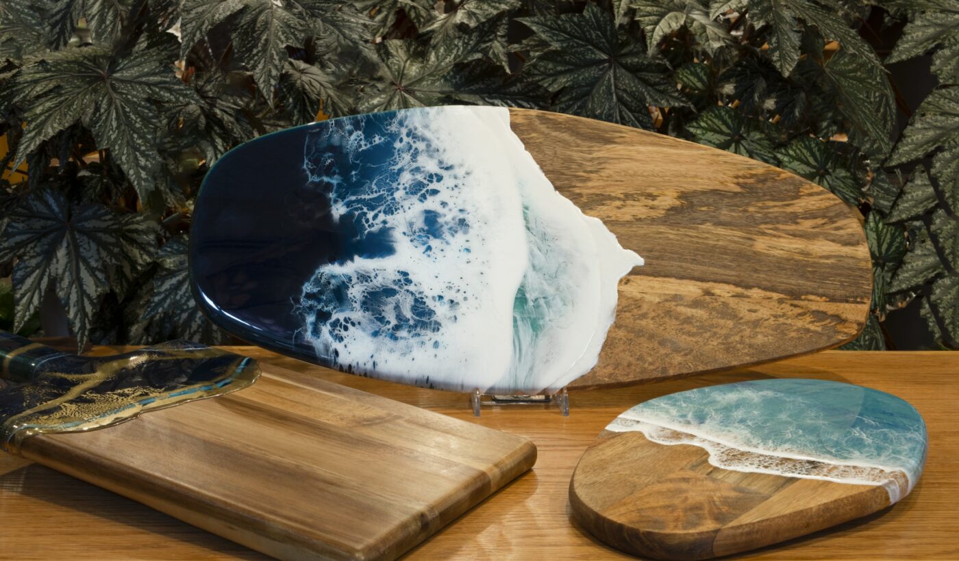 Arteak Cheese & Charcuterie boards are the perfect addition to your kitchen collection. Choose from a selection of stunning ocean designs embedded on beautiful teak. Victoria-based artist Rachel Piluso and her husband Justin, work together to create their eco-friendly wood and resin items. They take inspiration from nature with their favourite being the deep ocean, which is reflected in their charcuterie boards.