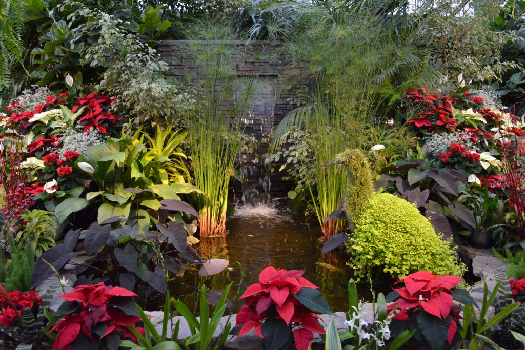 Other highlights include the outdoor winter arrangements flowing with mixed greenery and berries that can be found in many of the vintage cement urns, 11 gorgeous varieties of Poinsettia are among the nearly 2000 plants that fill the indoor displays in traditional reds, winter whites and soft pinks. Be sure to visit The Showhouse where all the gorgeous tropical plants are dressed up for Christmas in a stunning display.